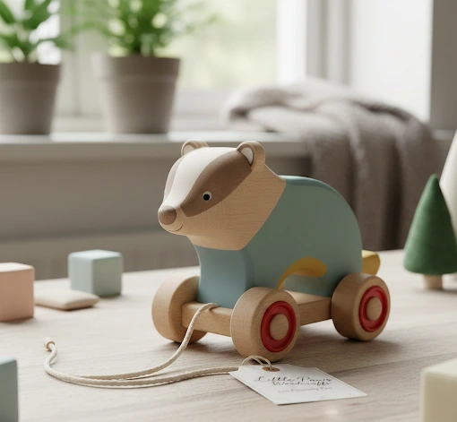 Meet Barnaby, the latest addition to the Little Paws Woodcrafts family. More than just a toy, Barnaby is a sturdy, silent partner for your toddler’s first explorations. Whether it’s a trek across the living room rug or a grand expedition to the kitchen, this wooden badger is ready to roll.